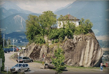 The great erratic at Monthey (La Pierre des Marmettes) on the western slope of the Rhone valley (Charpentier lived in near-by Bex). This massive rock originated 25 miles to the south, near Mont Blanc, apparently having somehow travelled down several valleys to its present location.