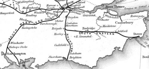 railways running into London from the south and west, ca. 1840.
